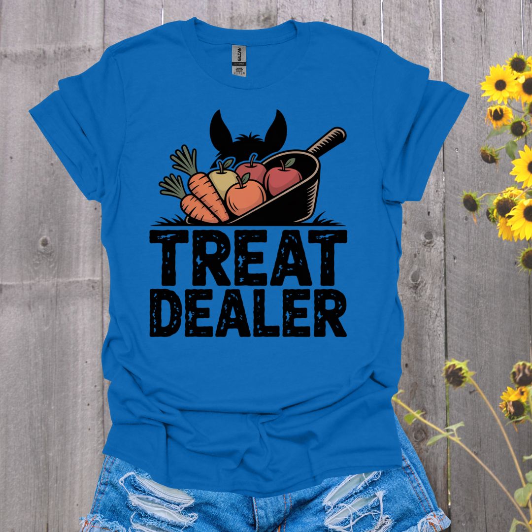 🐴🍪 Treat Dealer tee—perfect for horse lovers who always have cookies + carrots in their pockets! Funny equestrian shirt for barn days + trail rides 😂✨ #HorseGirl #HorseHumor #EquestrianLife