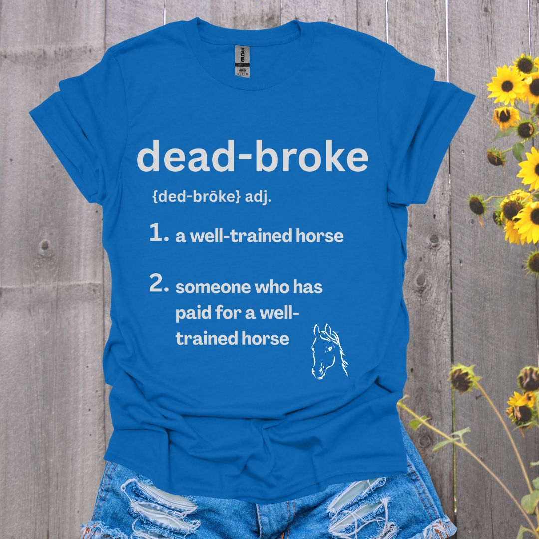 Dead broke—financially & literally 🐎💸 This soft tee is for every horse lover whose wallet can’t keep up with their barn life. #DeadBroke #HorseHumor #EquestrianProblems #BarnBudget #HorseGirlMath