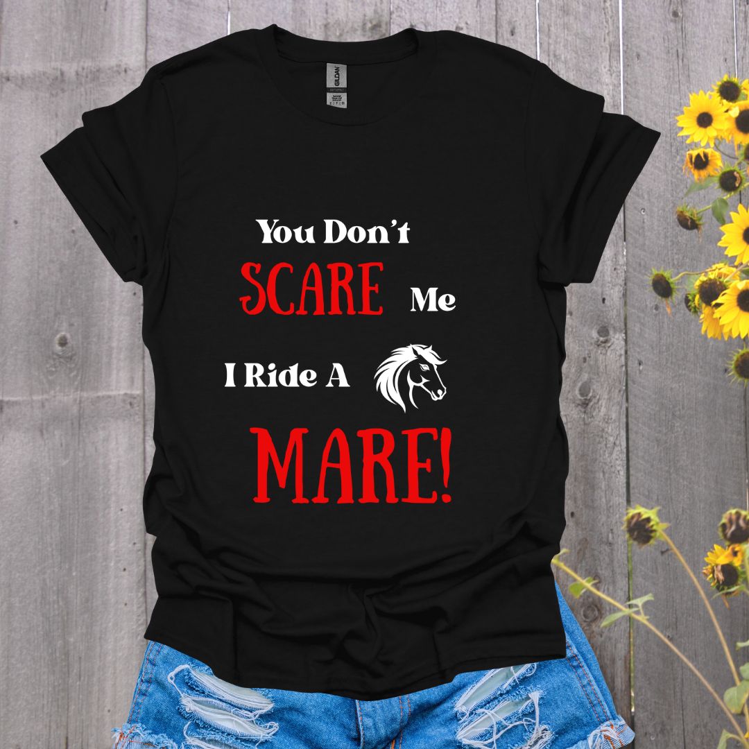 I’ve survived a red mare with opinions—what’s your excuse? 🔥🐴 “You Don’t Scare Me, I Ride a Mare” is for the brave, bold, and slightly bruised. #RideAMare #MareGlare #RedMareEnergy #HorseGirlTough #AttitudeInSaddle