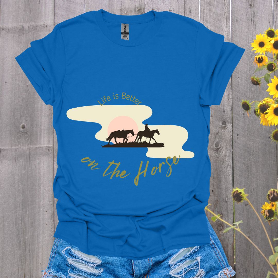 Barn days > bad days 🐴☀️ This soft tee says it all—life is just better in the saddle. Comfy, classic, and perfect for every horse lover. #LifeOnHorseback #EquestrianJoy