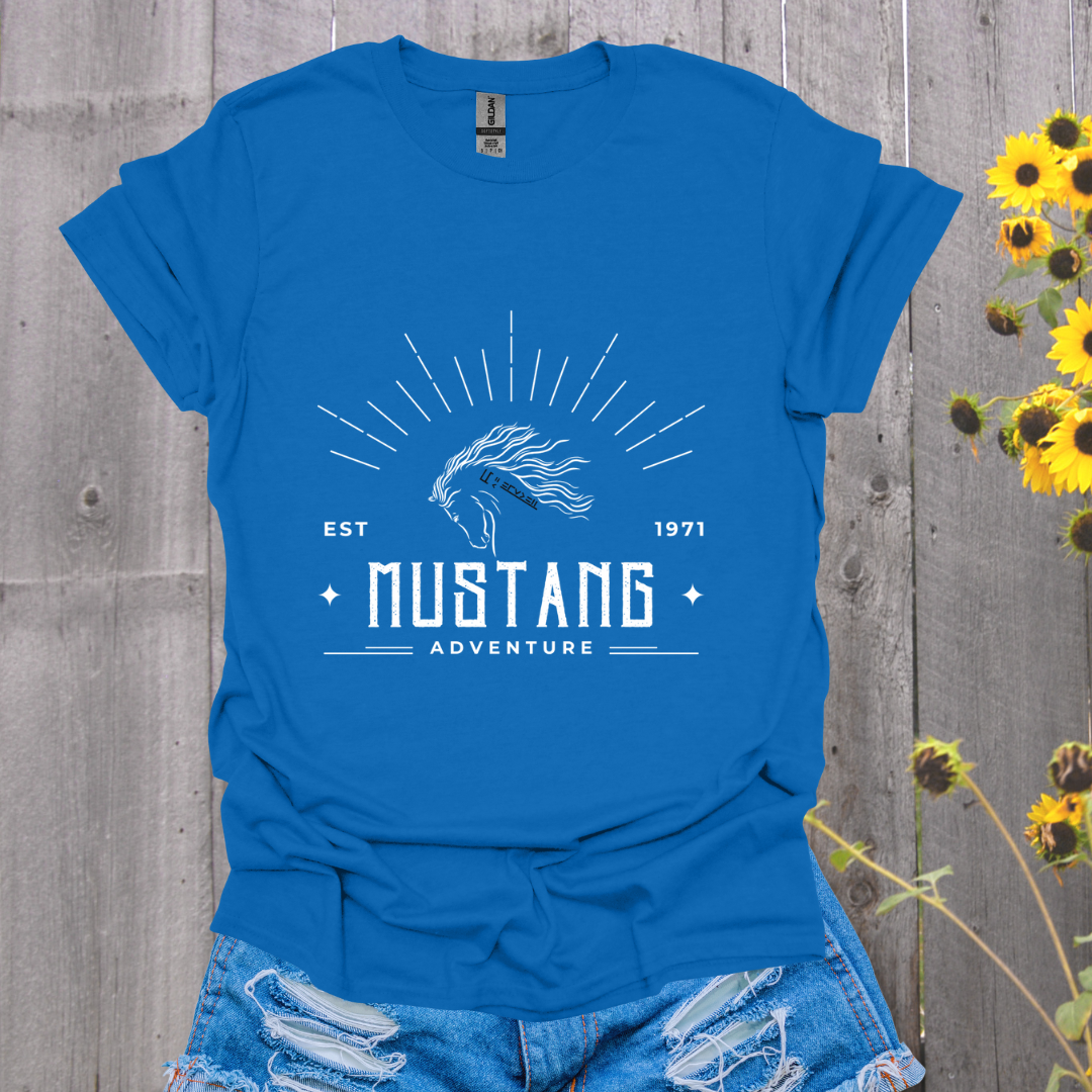 This mustang-themed T-shirt shares your love of horses and mustangs. Ideal for casual wear and can be worn during horseback riding, farm visits, or everyday activities.