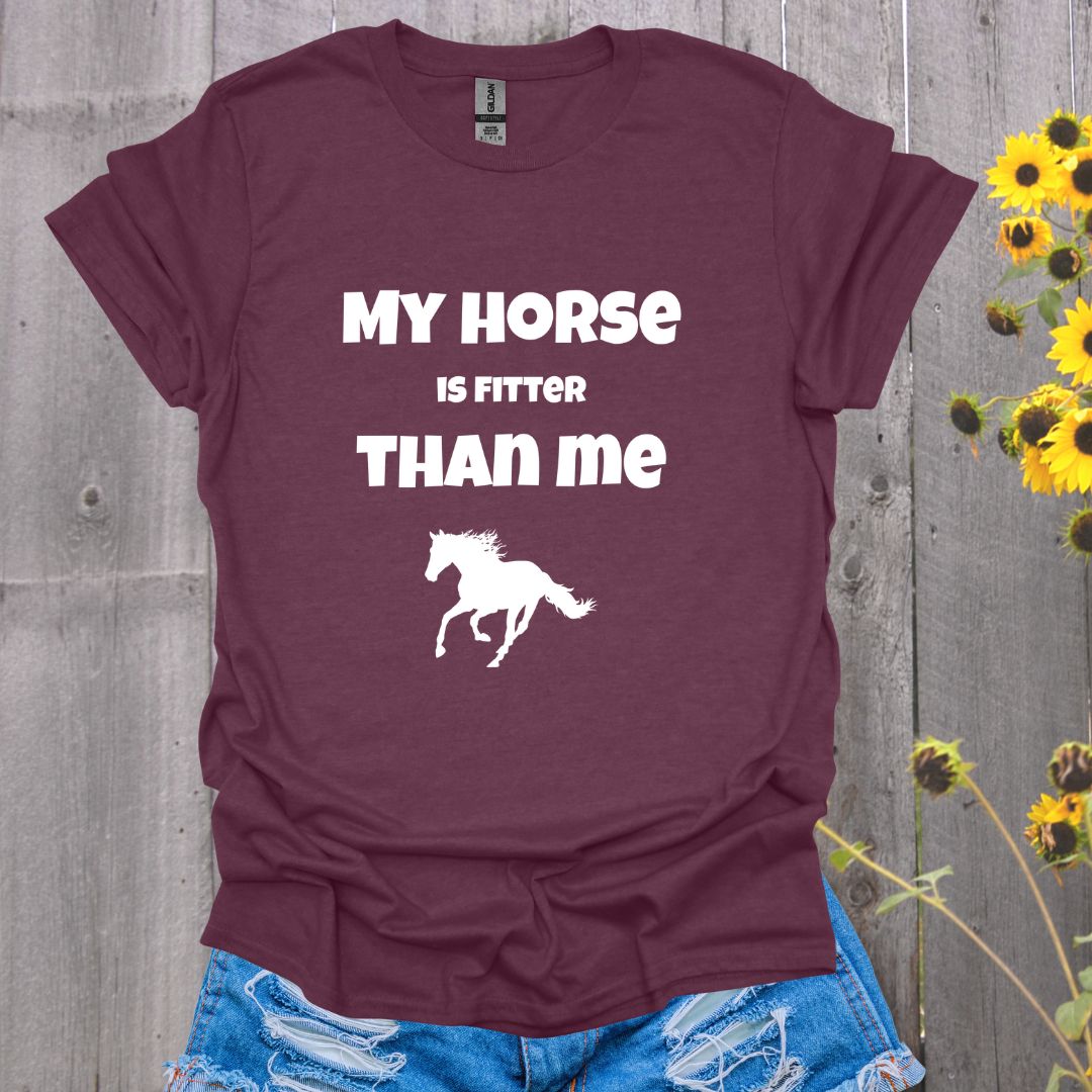 💨 Endurance truth: my horse is way fitter than I am! 🐎 Fun trail & endurance rider tee for horse lovers who laugh at the miles. #EnduranceRider #TrailLife #HorseHumor