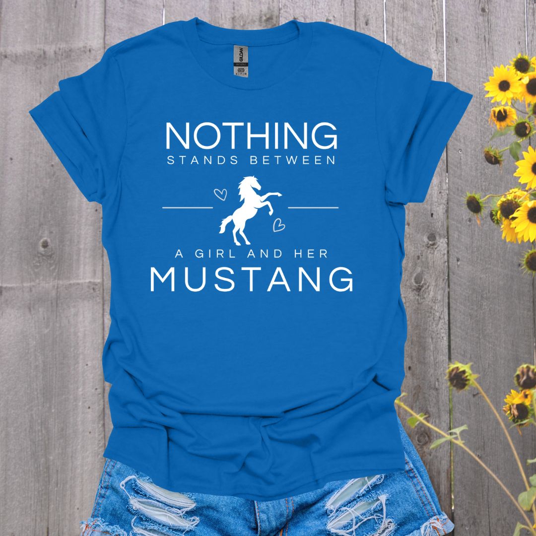 🐎 Nothing stands between a girl and her mustang ❤️ Bold tee for wild horse lovers who live free & ride strong. Perfect gift for Mustang moms & riders! ✨ #MustangHorse #WildHorseLife