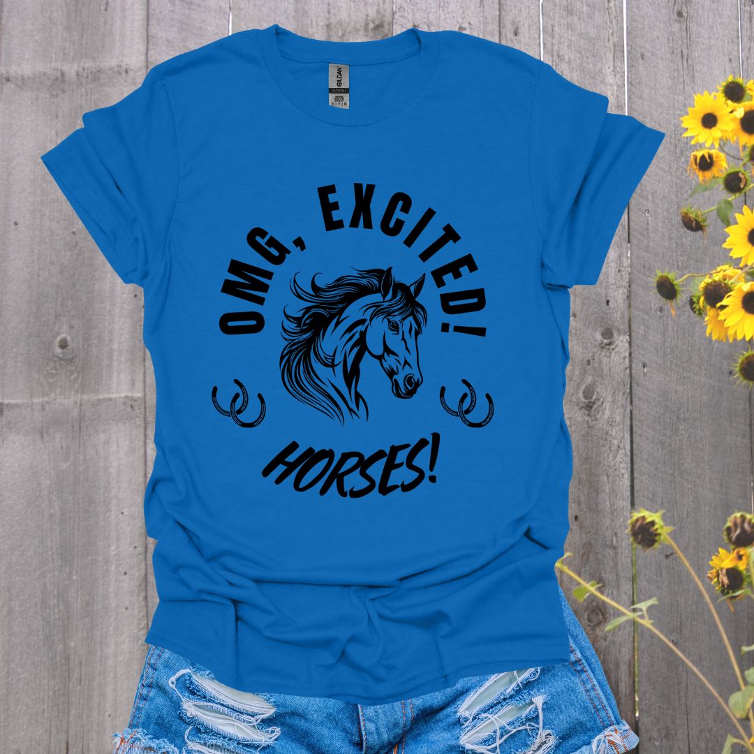 OMG! Horses?! 🐴🤩 This soft tee is made for riders who light up at the word “horse.” Fun, comfy, and totally equestrian-obsessed. #HorseGirlEnergy #EquestrianExcitement