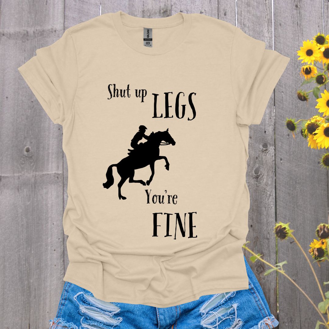 Miles to go? Tell your legs to hush 🐎🔥 This soft tee is for endurance riders who push past the pain and ride on. #EnduranceRider #ShutUpLegs #TrailLife #RideFar